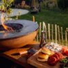 Neben der Feuerschale bietet diese mobile Aussenküche eine durchdachte Arbeitsfläche mit Platz für den optionalen BonFeu Butcherblock. Im offenen Sockelbereich darunter lassen sich sowohl Kochzubehör als auch Brennholz praktisch verstauen. Robuste Rollen ermöglichen es, die BonBiza Island mühelos an jedem beliebigen Ort im Garten zu positionieren – ganz nach Lust und Laune.