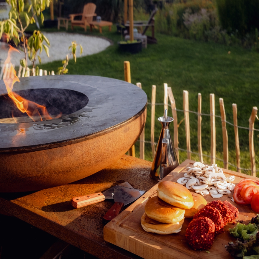 Der besondere Reiz der BonBiza liegt in ihrer Vielseitigkeit: Sie spendet nicht nur wohlige Wärme, sondern verwandelt sich mit ihrer massiven Plancha-Grillplatte in eine grosszügige Kochfläche. Die 6 mm starke Platte verteilt die Hitze gleichmässig von der Mitte bis zum Rand und eignet sich ideal zum Braten, Grillen und Backen verschiedenster Gerichte – alles gleichzeitig auf einer Fläche.