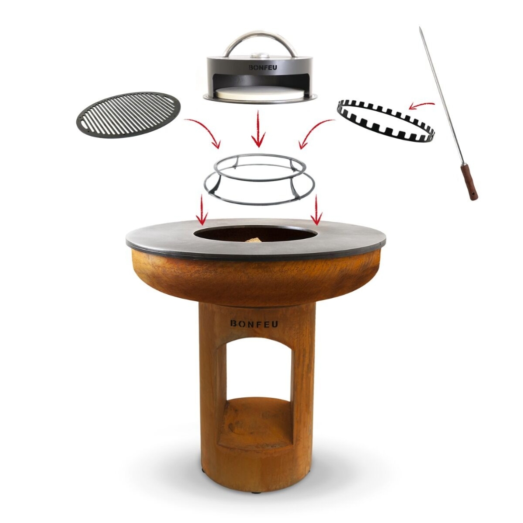 Wie der klassische BonBiza-Grill kann auch der BonBiza XL mit verschiedenem Zubehör erweitert werden. So ist ein Ständer für den BonBiza der Beginn eines Kochabenteuers mit vielen Möglichkeiten. Legen Sie einen zusätzlichen Grillrost, einen Pizzaofen oder Grillspiesse auf den Ständer. Aber auch ein komplettes Rotisserie-Set kann den BonBiza XL zu einem noch vollständigeren Grill erweitern.