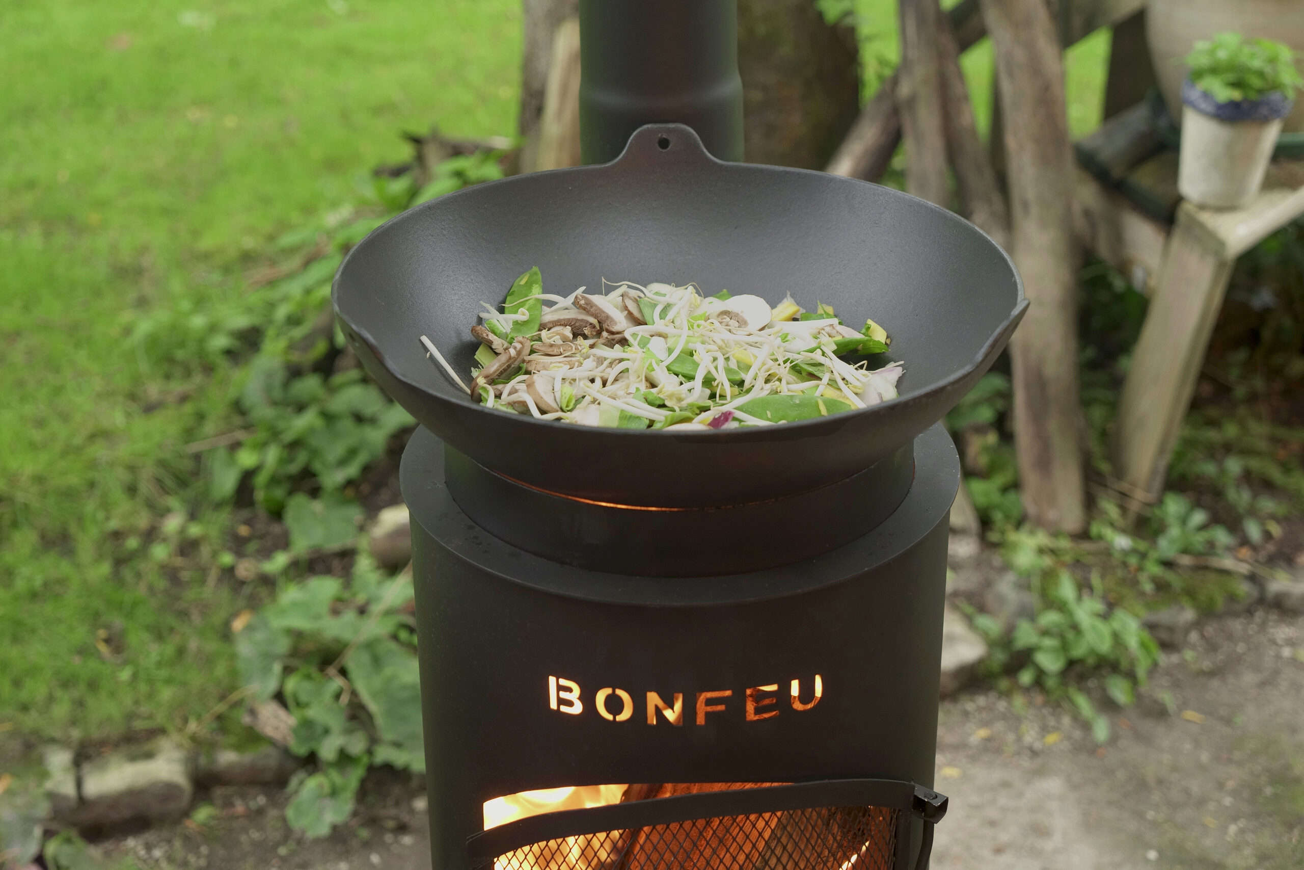 Der BonGiano LP und BonGiano SP wird mit Grillrost und Deckel geliefert. Diesen Deckel können Sie ganz einfach durch den BBQ-Grill oder den Wok-Ring aus Edelstahl ersetzen. Dieser Wok-Ring bietet Ihnen die Möglichkeit, eine Wok-Pfanne auf der Feuerstelle zu verwenden, die fest an Ort und Stelle bleibt. Und wenn Sie nur eine Kanne Tee erhitzen möchten, können Sie den Deckel umdrehen und ihn als Kochplatte verwenden.
