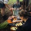 Kochen im Freien über einem authentischen Feuer