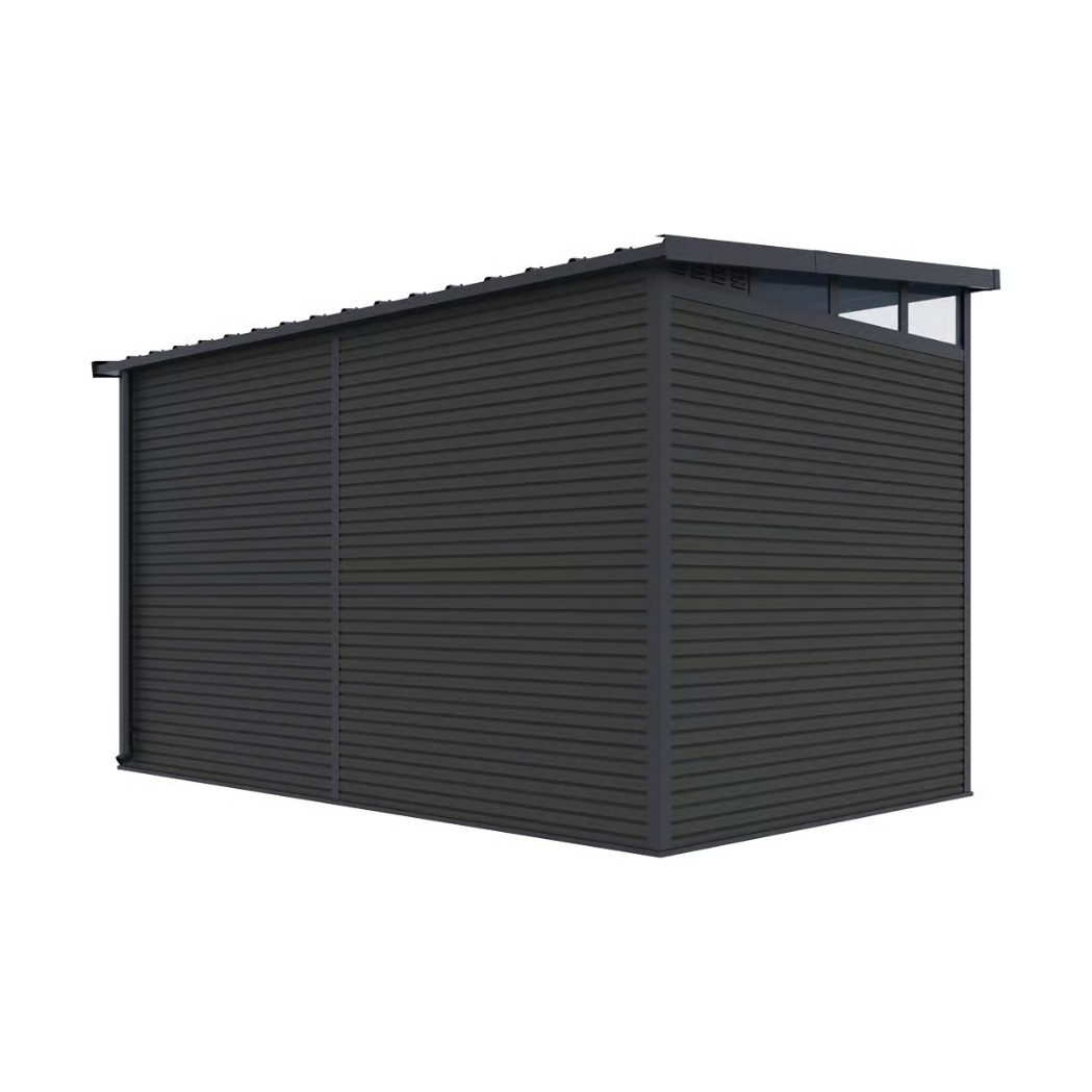 Mit seinem stabilen Aluminiumrahmen und dem wetterfesten, verzinkten Stahldach bietet dieser Geräteschuppen optimalen Schutz für Ihre Gartenwerkzeuge, Maschinen, Fahrräder oder Möbel.
