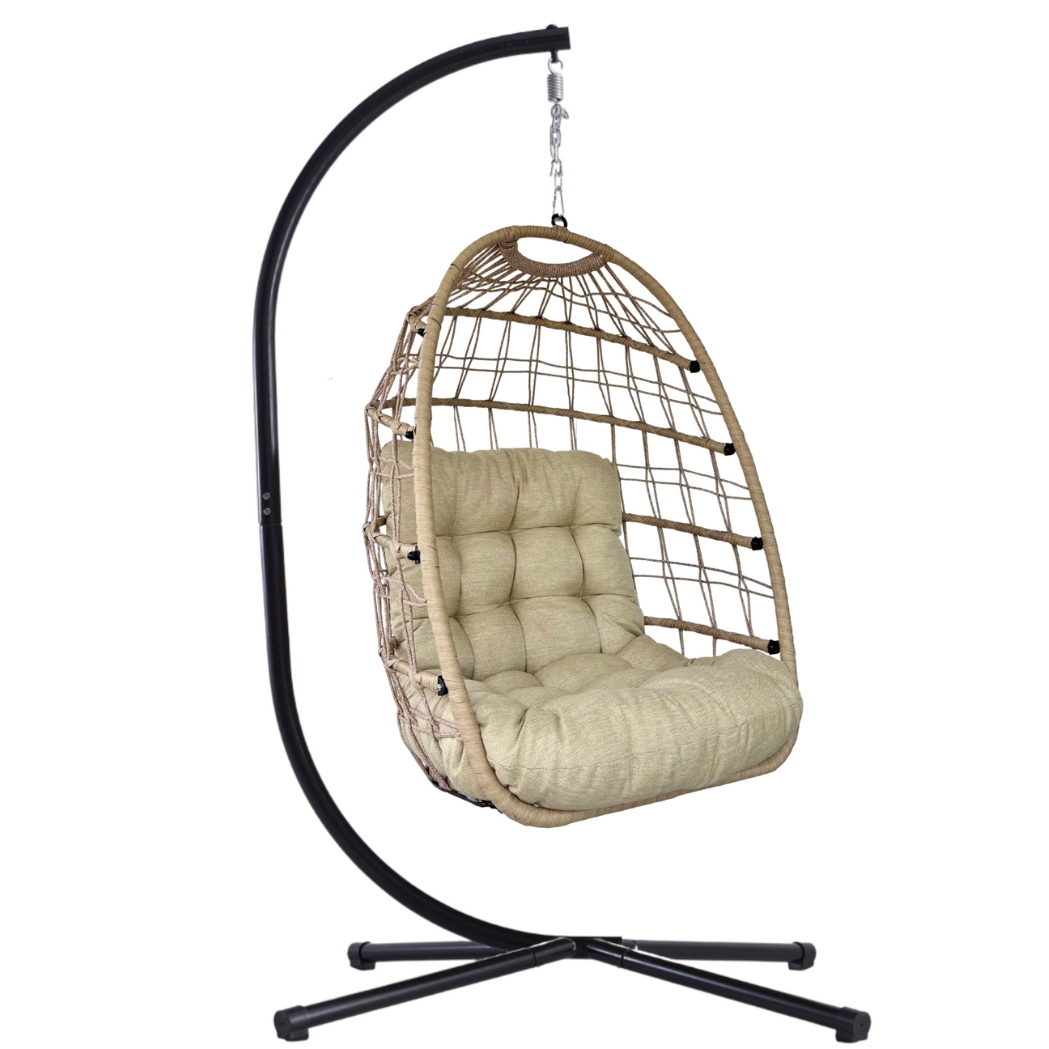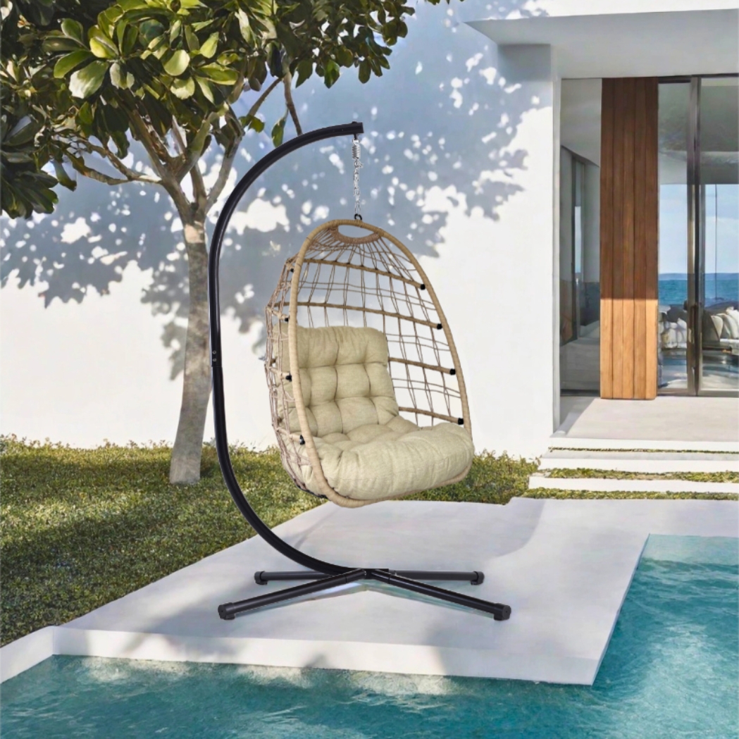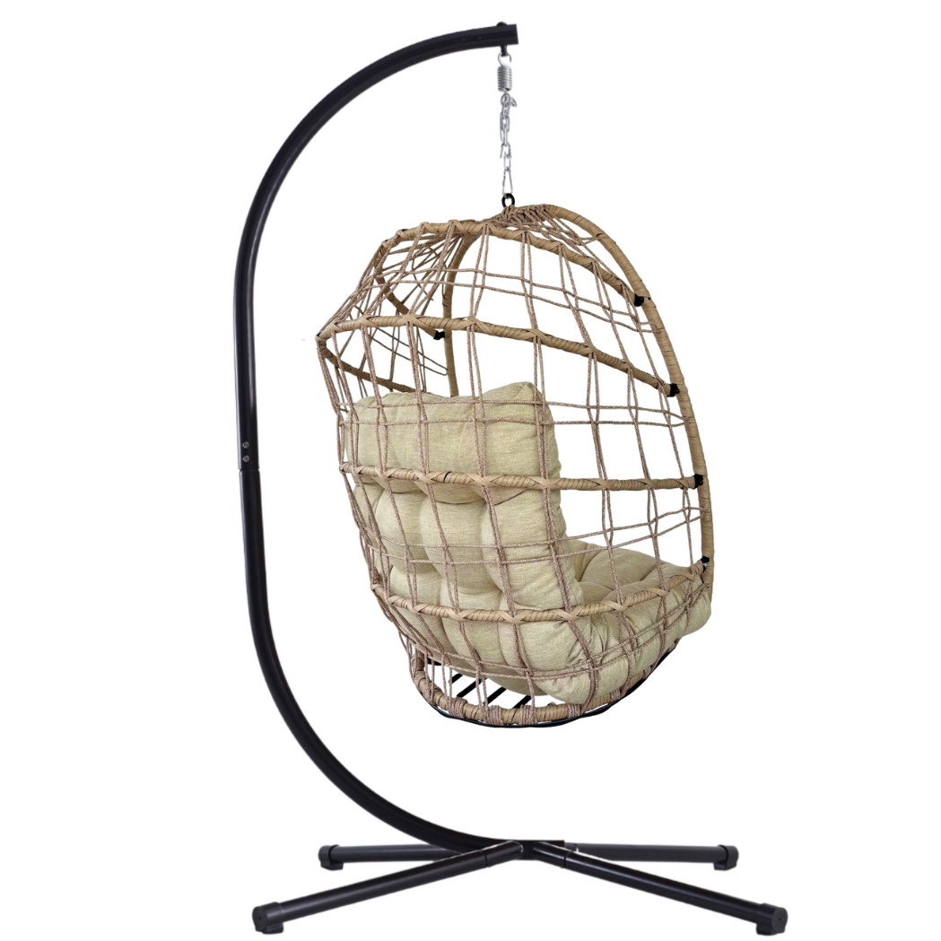 Hängesessel Chloe Polyrattan Sand – wetterfest, klappbar & inkl. Komfort-Kissen