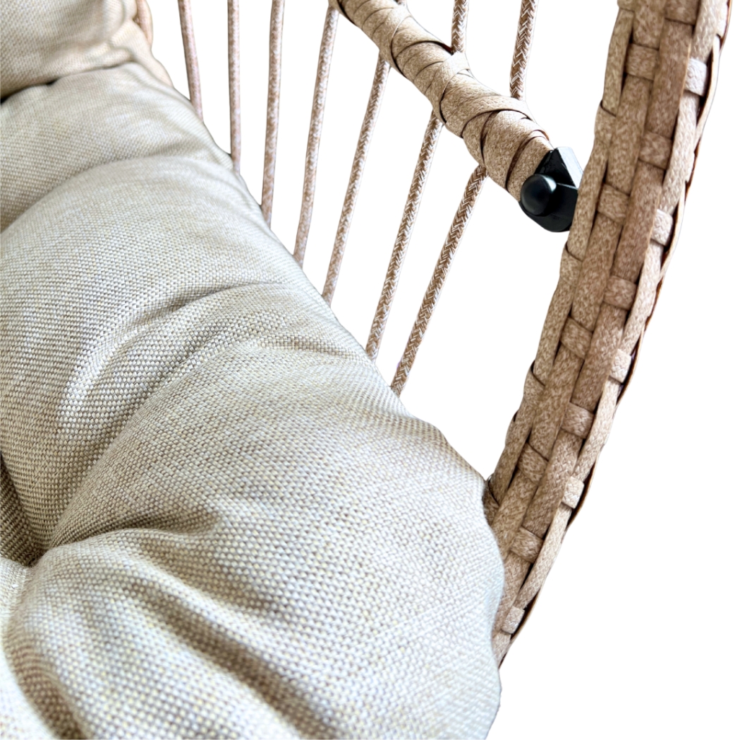 Unser Outdoor-Hängesessel ist die perfekte Ergänzung für Balkon, Garten oder Terrasse. Er schafft einen stilvollen und gemütlichen Rückzugsort im Freien und lädt zum Entspannen ein. Das sanfte Schaukeln, kombiniert mit frischer Luft und Sonnenstrahlen, macht den Hängesessel für draussen zu einem echten Highlight unter den Gartenmöbeln. Dank seiner komfortablen Form und hochwertigen Verarbeitung ist er nicht nur bequem, sondern auch ein echter Blickfang – ob im Outdoor-Bereich oder sogar im Wohnzimmer.
