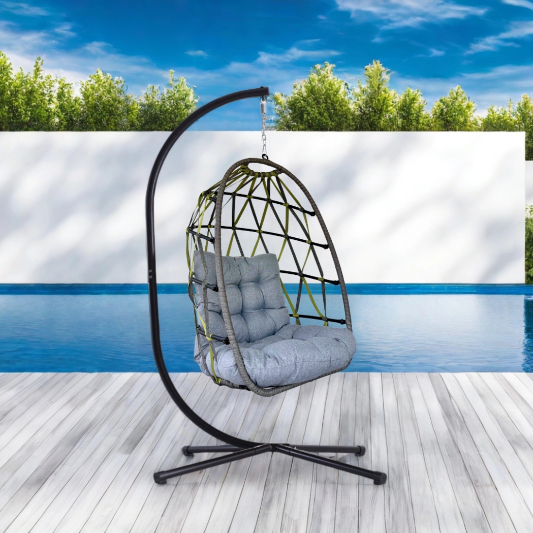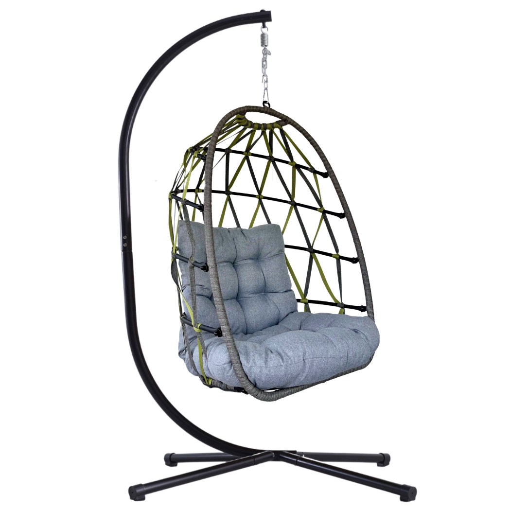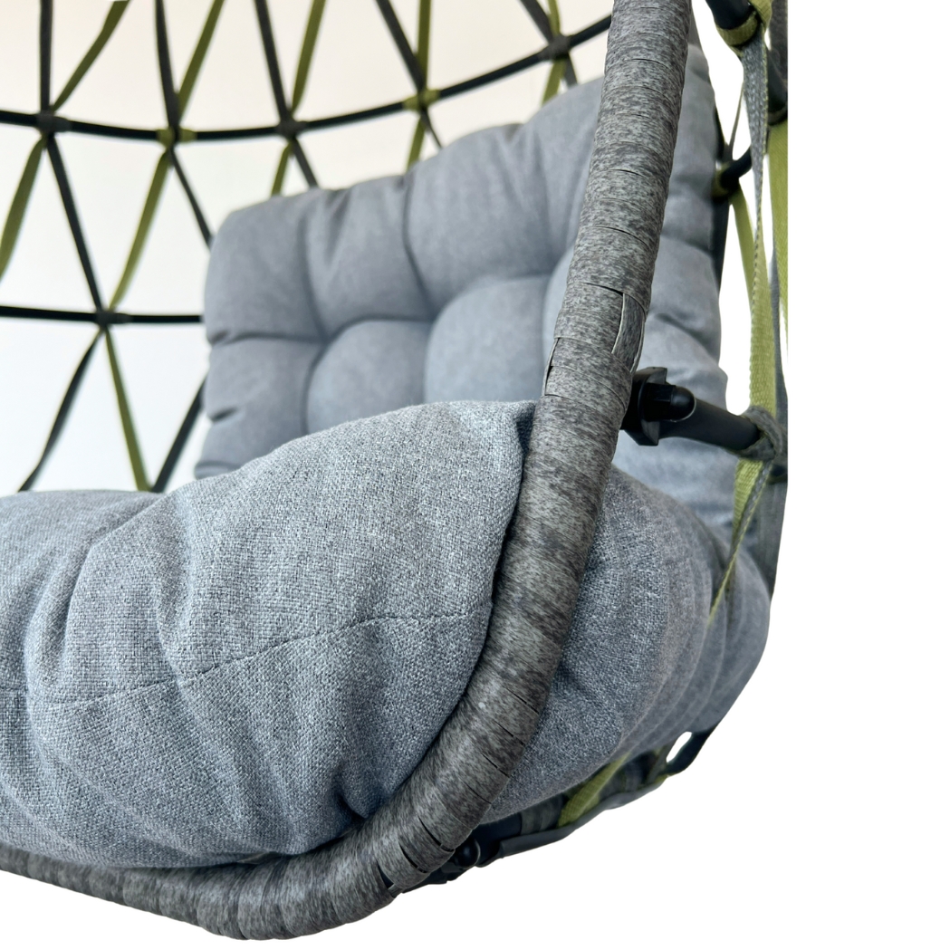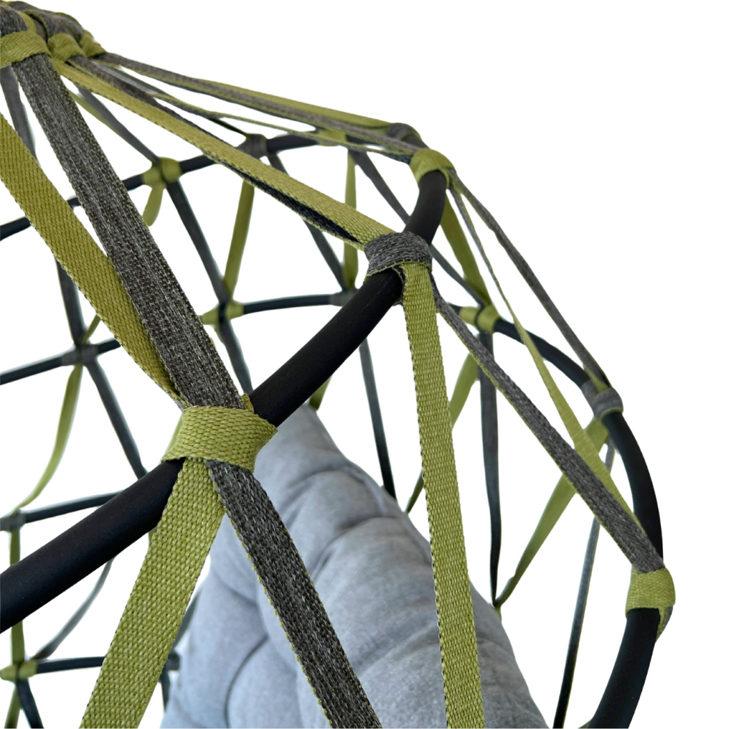 Hängesessel Diamond-Band Grau/Grün – wetterfest, klappbar & inkl. Komfort-Kissen