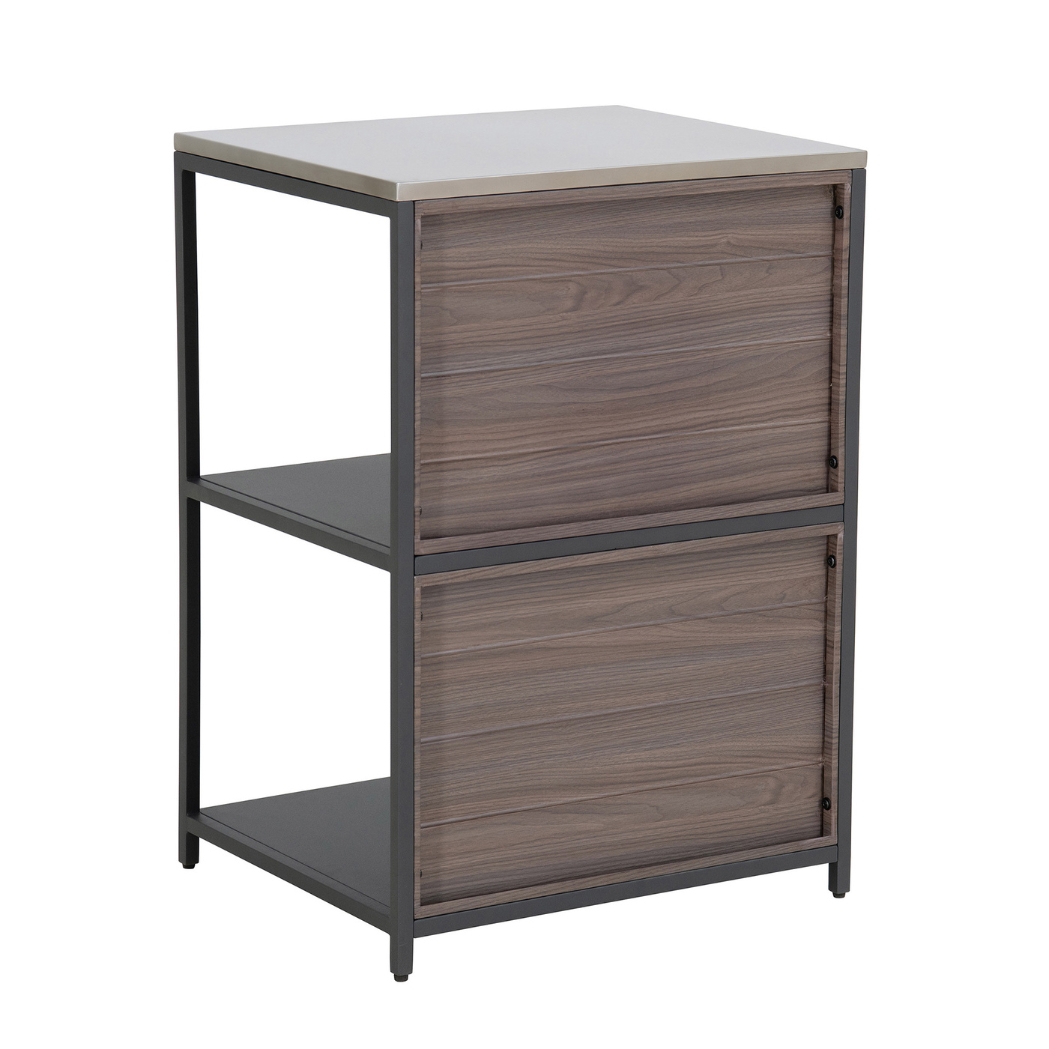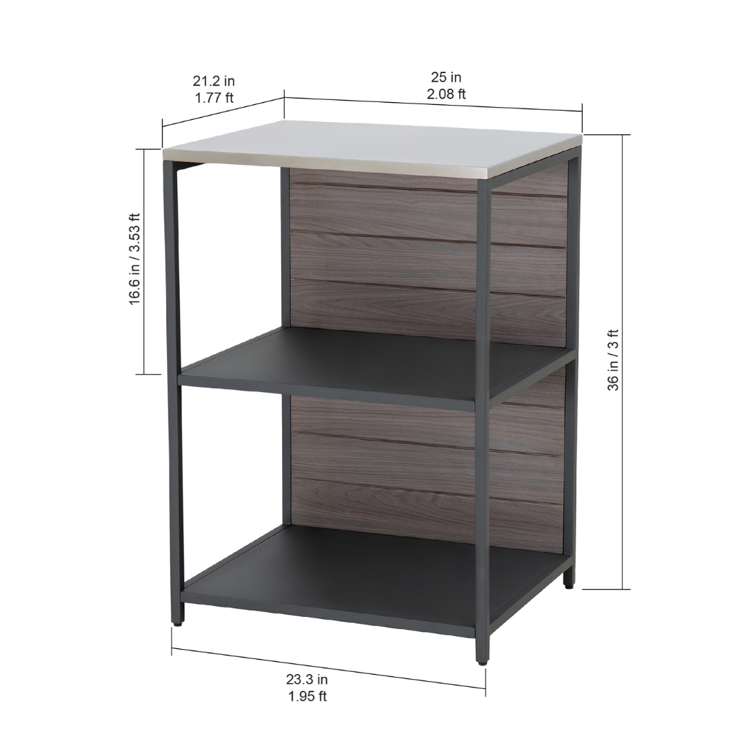 Werten Sie Ihre Aussenküche mühelos mit dem Küchenregal auf. Mit dreistufigen offenen Ablageflächen haben Sie reichlich Platz, um alle Ihre Kochutensilien zu organisieren und Ihren Arbeitsbereich ordentlich und effizient zu halten. Verabschieden Sie sich von unordentlichen Vorbereitungsbereichen mit der eleganten Edelstahl-Arbeitsplatte, die eine einfache Reinigung und eine makellose Kochfläche gewährleistet. Werten Sie die Optik Ihres Aussenbereichs mit der natürlich wirkenden Holzmaserung auf und verleihen Sie Ihrer Einrichtung einen Hauch von rustikalem Charme.