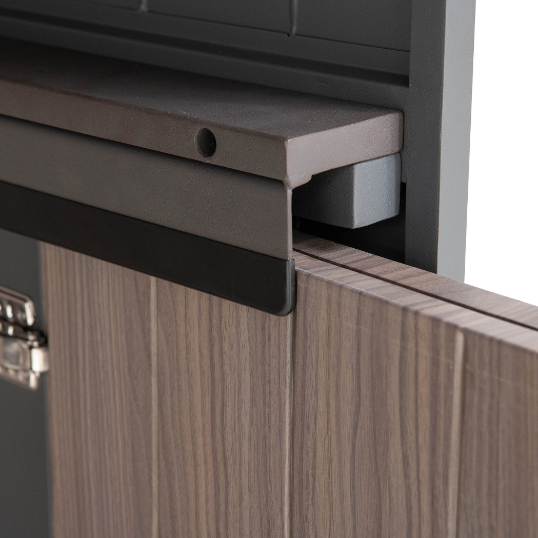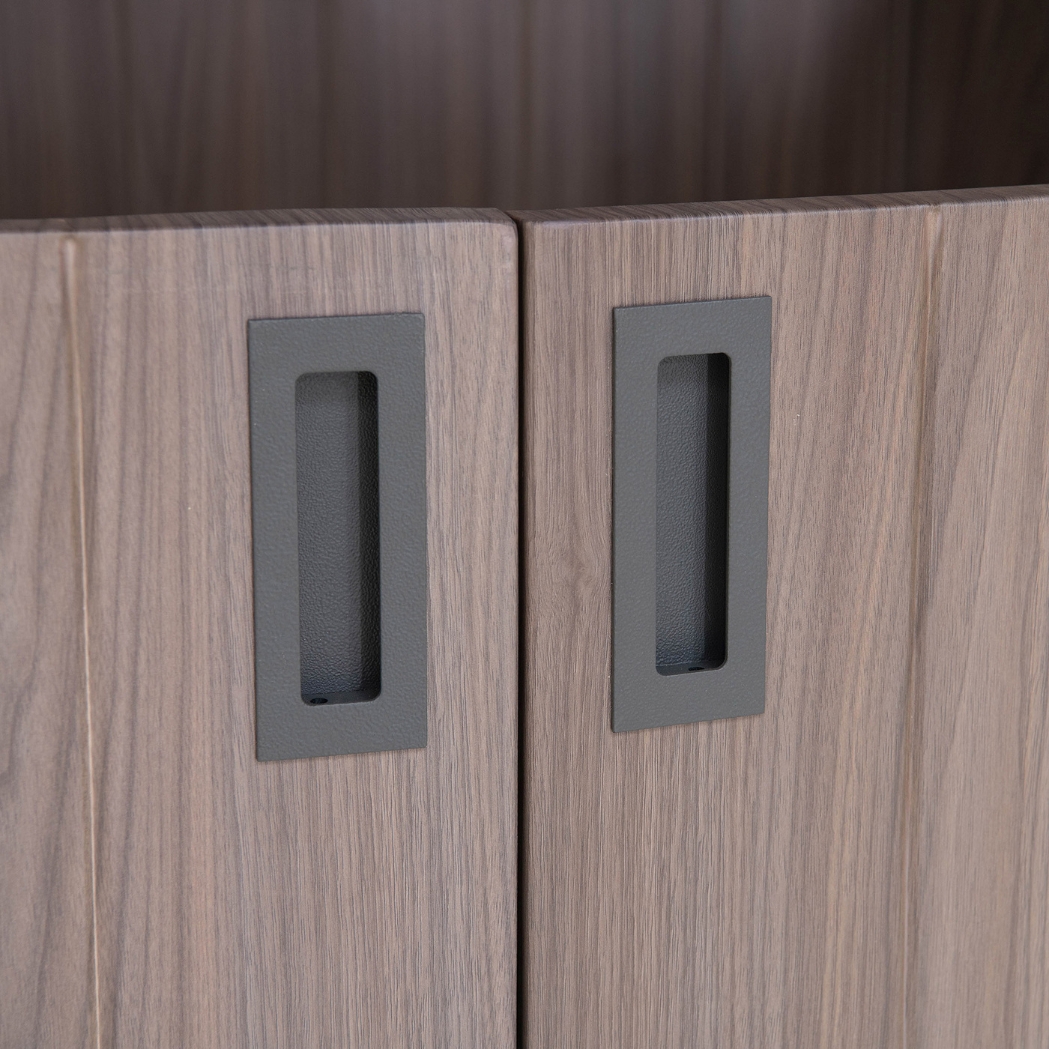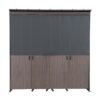 Schaffen Sie mit dieser Outdoor-Küche mit Türen die perfekte Kochstation im Freien. Es ist elegant verarbeitet und verfügt über eine nach oben öffnende Tür in Dunkelgrau und zwei Schiebetüren für einfachen Zugang, die bei Nichtgebrauch vollständig geschlossen werden können. Das Regal und der Handtuchhalter in der Küche sorgen dafür, dass Sie Ihre wichtigsten Utensilien griffbereit haben, und die drei Netzfenster an den Wänden sorgen für Belüftung.