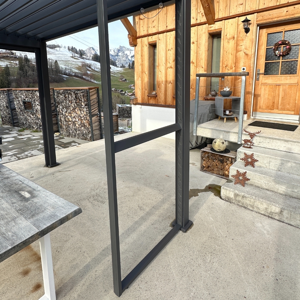 Die modular aufgebauten Lamellenwände ermöglichen flexible Positionierung nach Ihren individuellen Vorstellungen. Die Ventaris Lamellenwand bietet somit eine sowohl funktionale als auch ästhetische Lösung für Ihren Aussenbereich.