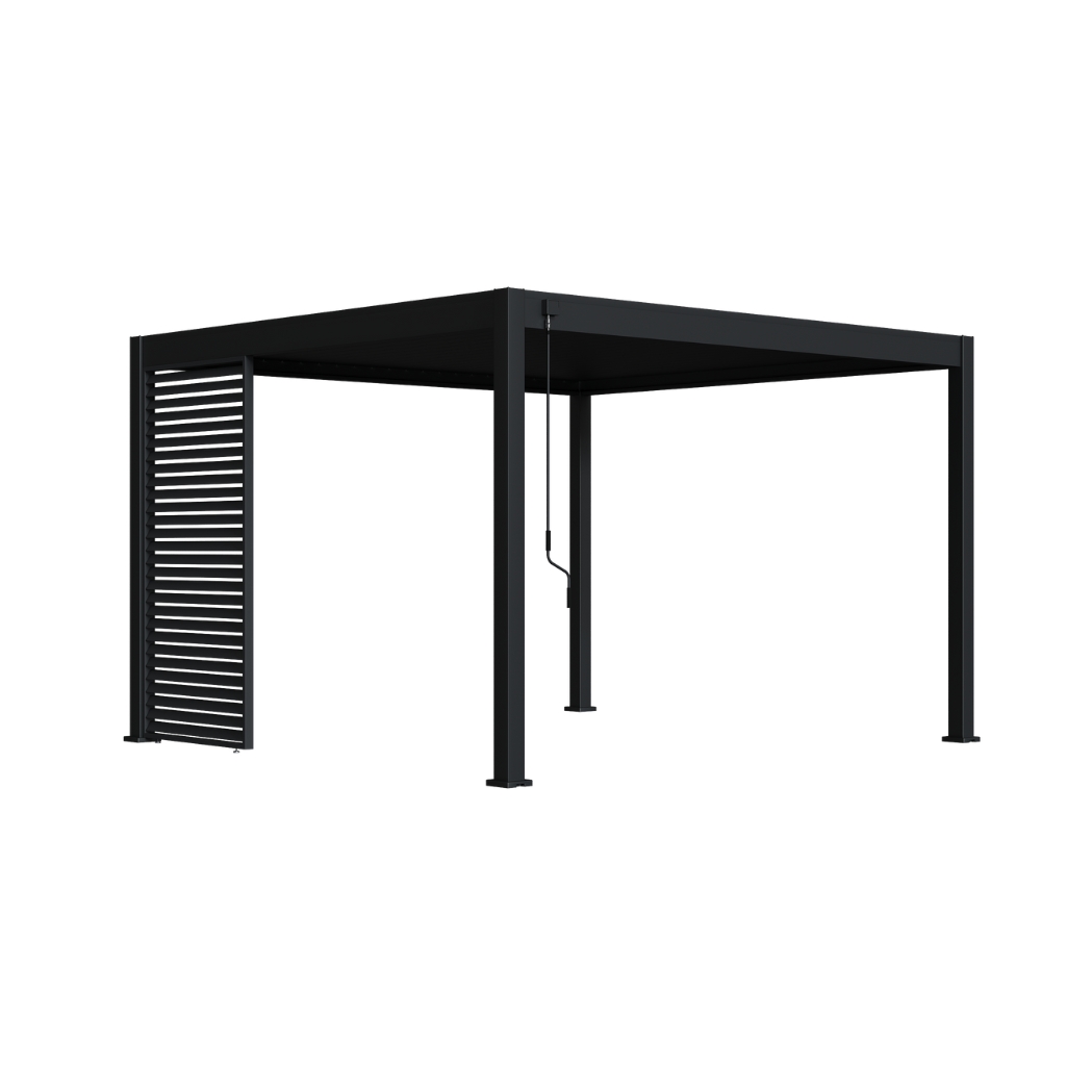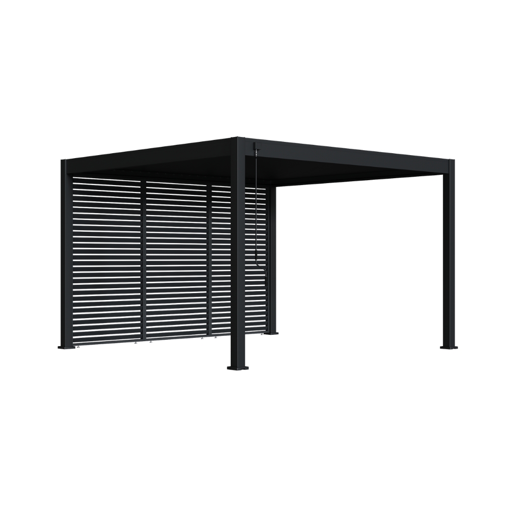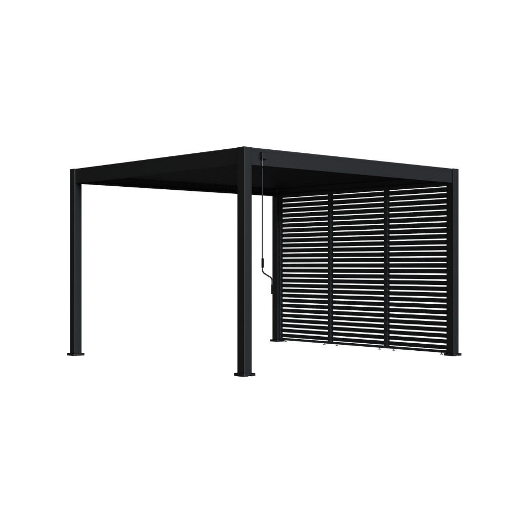Die Lamellenwand von Ventaris stellt eine hochwertige Ergänzung für Ihre Ventaris Pergola dar. Sie gewährleistet zusätzliche Privatsphäre und bietet Schutz vor Wind sowie den störenden Einflüssen einer tief stehenden Sonne. Durch ihr einzigartiges Design lässt sich die Lamellenwand nahtlos an Ihrer Pergola anbringen. Dank der beigefügten Aufbauanleitung gestaltet sich die Installation mühelos. Die festgeklickten, nicht verstellbaren Lamellen gewährleisten eine dauerhafte Positionierung. Hergestellt aus robustem Aluminium verspricht die Lamellenwand Langlebigkeit.