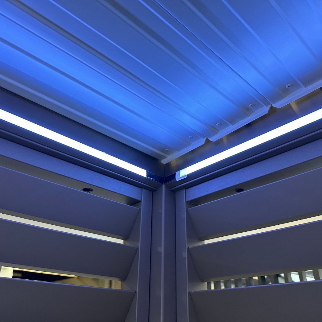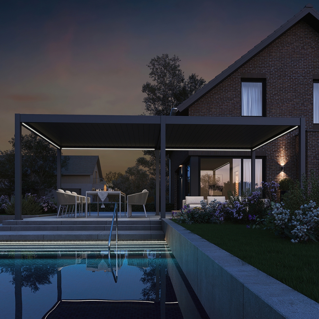 Verwandeln Sie Ihre Pergola in eine stimmungsvolle Wohlfühloase mit unserer hochwertigen LED Beleuchtung. Diese speziell entwickelte Beleuchtung wird umlaufend in die Rinne Ihrer Pergola eingesetzt, sodass sie perfekt integriert ist und für eine gleichmässige Ausleuchtung sorgt.