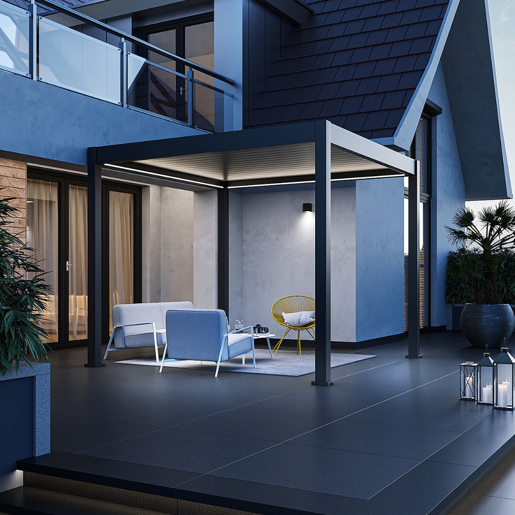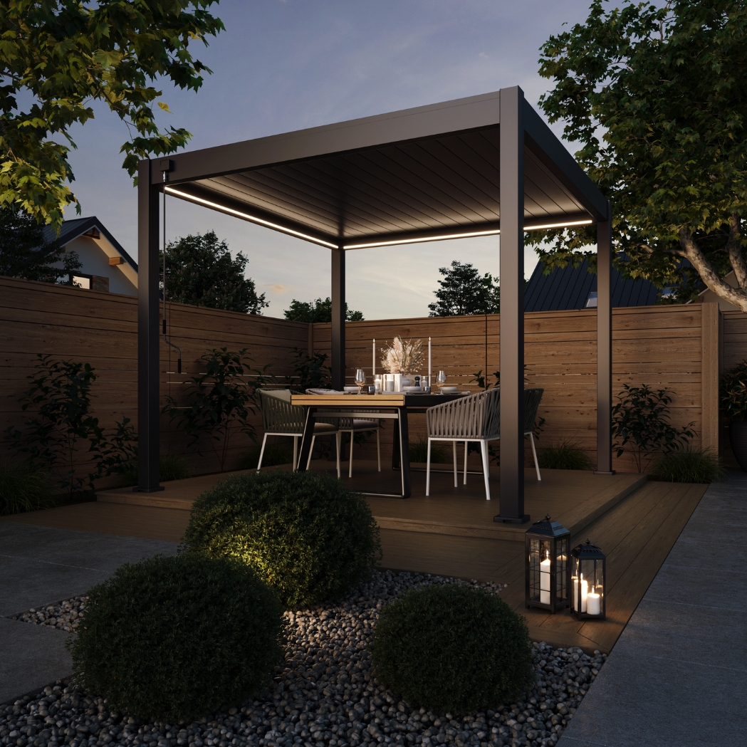 VENTARIS Pergola Deluxe Plus 3×3m mit LED-Beleuchtung: Exklusive Aluminium-Terrassenüberdachung in Anthrazit