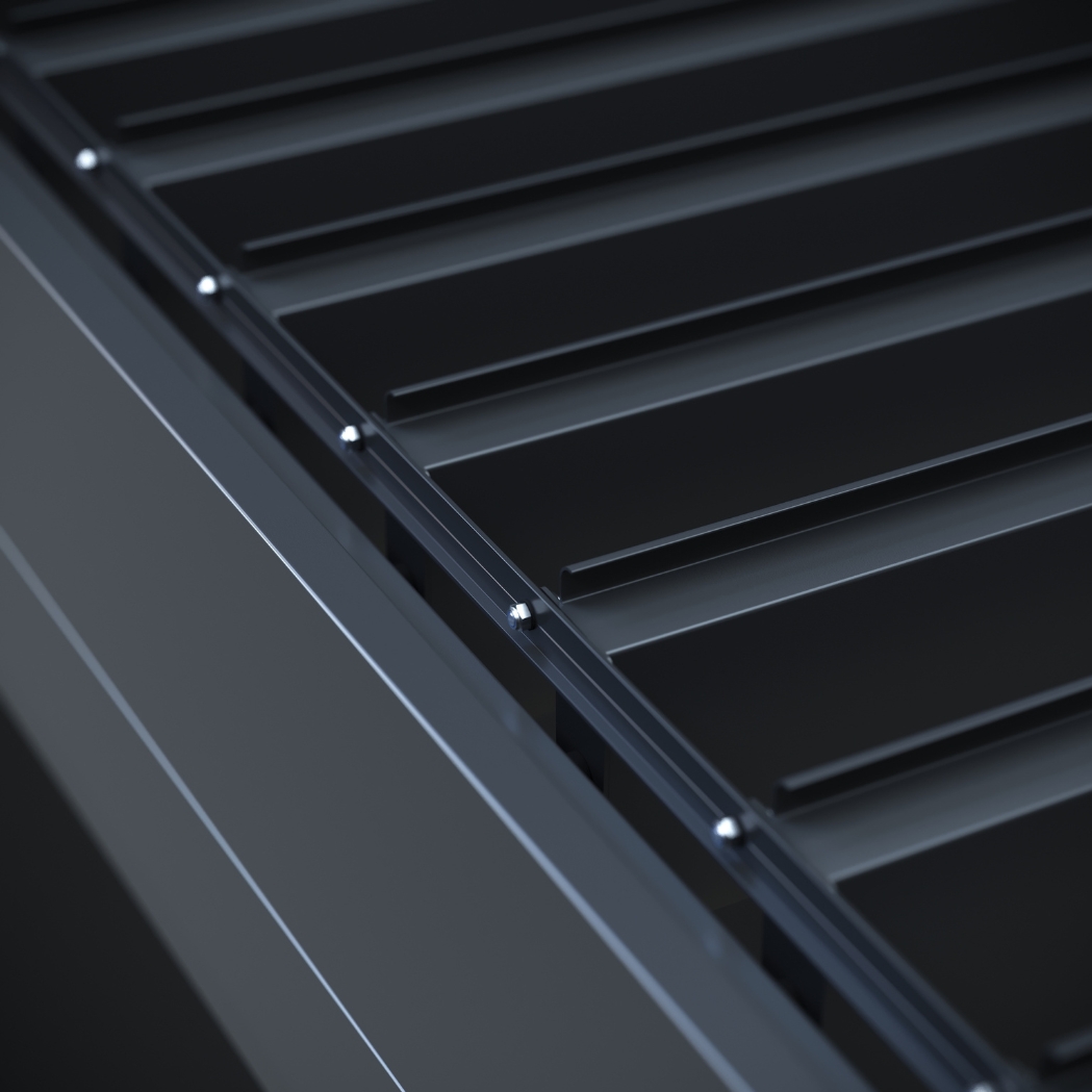 - NEU: Verstärktes Dachsystem: Jede einzelne Lamelle ist für eine Schneelast von bis zu 50 kg ausgelegt.