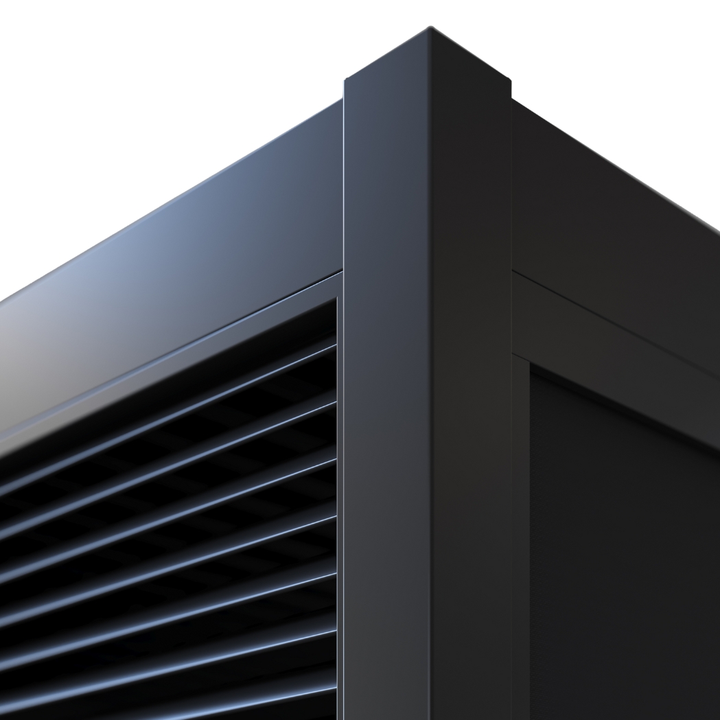 Das einzigartige, glatte Kipplamellendach verleiht der VENTARIS Pergola einen besonders hochwertigen Look. Das überarbeitete Design arbeitet mit extra hohen Balken, um technische Details wie Schienen, Schrauben oder Bolzen geschickt zu verbergen – für eine cleane, luxuriöse Optik.