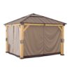 Werten Sie das Aussehen und die Funktionalität Ihres Pavillons mit Holzrahmen durch wetterbeständige Vorhänge auf.