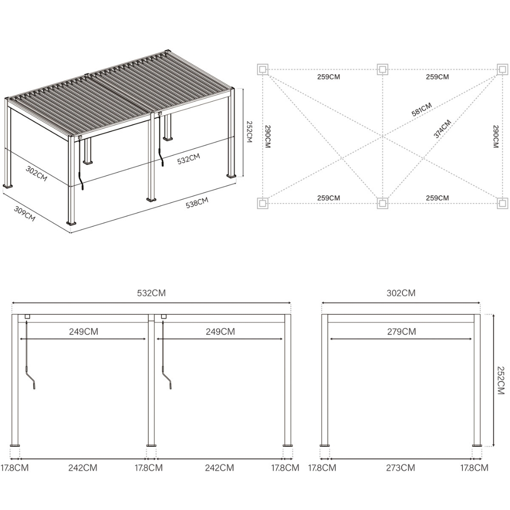 Wichtiger Hinweis für den Winter: Um die Langlebigkeit Ihrer Pergola zu maximieren, sollten die Lamellen bei angekündigtem Schneefall in eine vertikale Position gebracht werden.