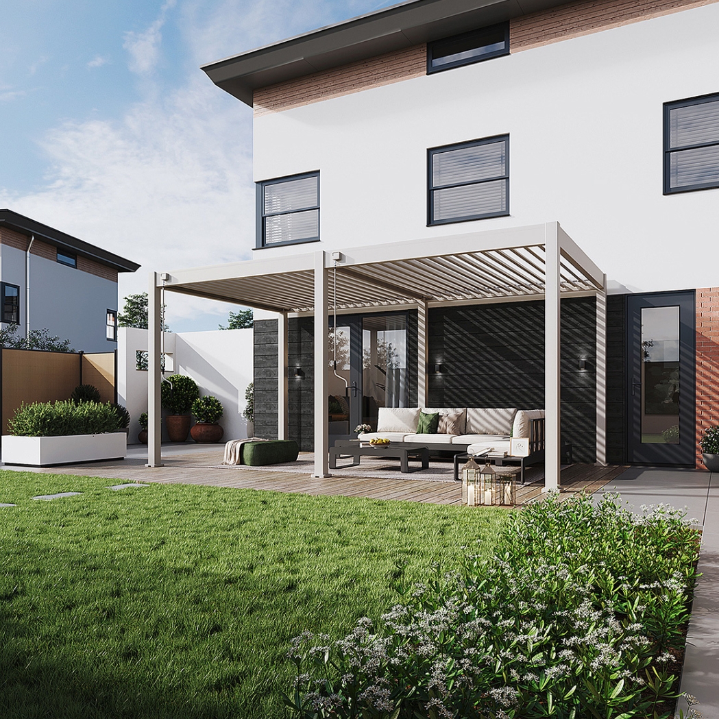 - Flexibler Sonnenschutz: Die Dachlamellen lassen sich bis zu 135° neigen, um den Lichteinfall individuell zu regulieren.