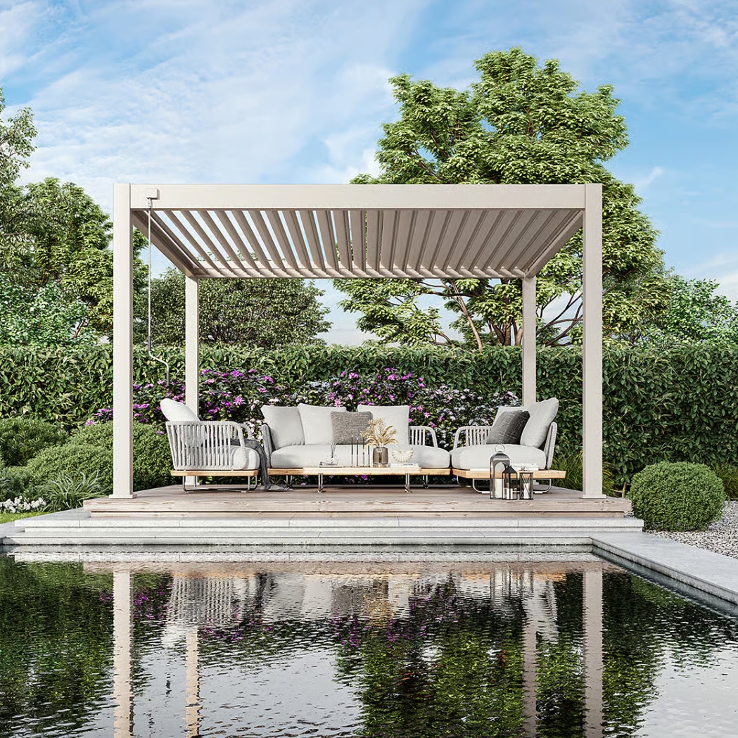 Weide Pergola Deluxe Plus 4x4m mit Lamellendach Ivory Sand