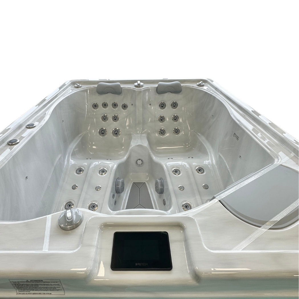 Für maximalen Bedienkomfort ist der Whirlpool mit dem modernen SPATECH TP10 Touchscreen-Steuerungssystem ausgestattet. Alle Funktionen wie Temperatur, Beleuchtung, Pumpen oder Filterzyklen lassen sich intuitiv steuern – auf Wunsch sogar über die Smartphone-App für iOS und Android. Damit haben Sie die volle Kontrolle – jederzeit und von überall.